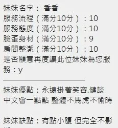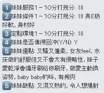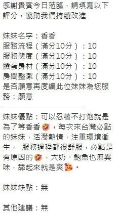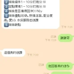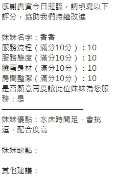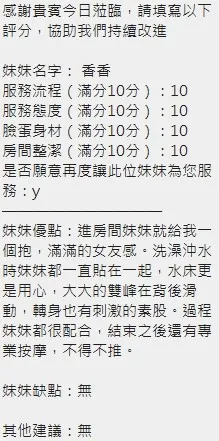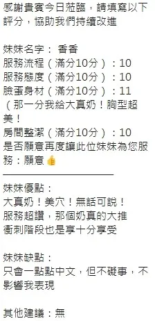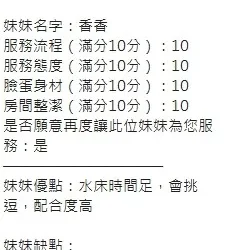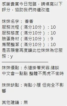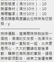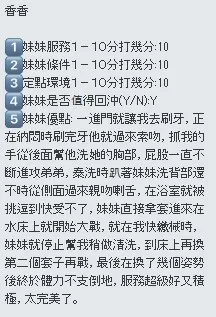 奶砲,按摩,69,共浴,LG(舌吻)依氣氛衛生而定,可親嘴,無套吹,品鮑,舔蛋,奶推,屁推,水床浴,變裝(自備免付),絲襪(自備免付),中文溝通,快餐,2S
