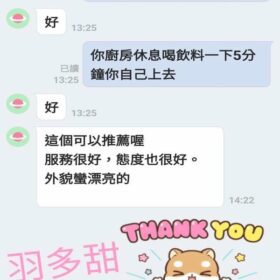奶砲,按摩,69,共浴,LG(舌吻)依氣氛衛生而定,可親嘴,無套吹,口爆,品鮑,中文溝通,快餐,2S