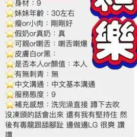 奶砲,毒龍,按摩,69,共浴,LG(舌吻)依氣氛衛生而定,可親嘴,無套吹,口爆,足交,品鮑,舔蛋,艷舞秀,變裝(自備免付),玩具(按摩棒),玩具(跳蛋),情趣用品(客自備),無套做,無套內射,後門,自慰秀,快餐,2S,包夜