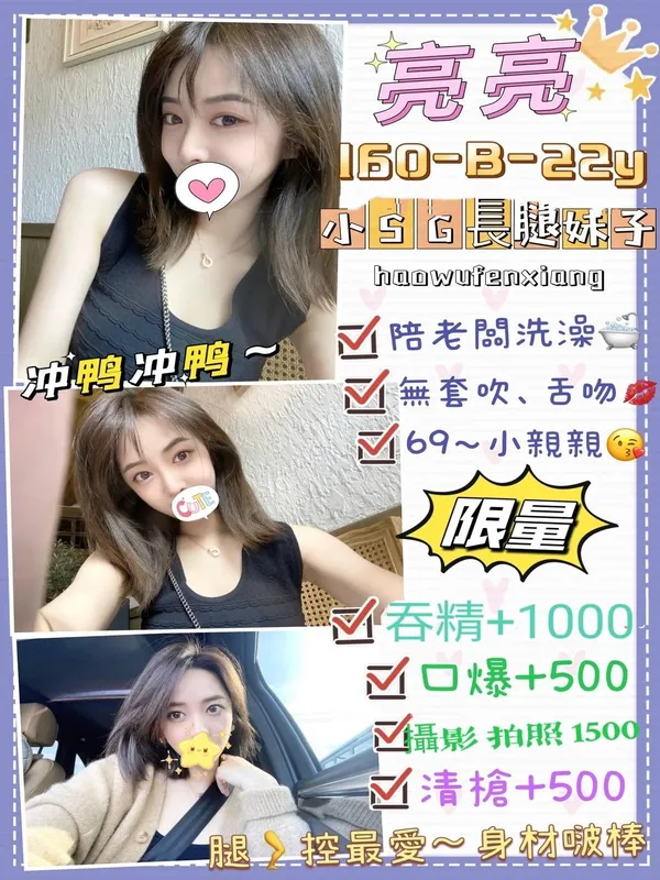 2S+500(60分)、口爆+500、吞精+1000、清槍+500、攝影+1500(不露臉)