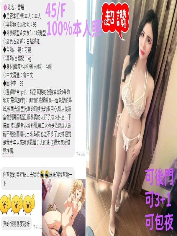 奶砲,按摩,桑拿,69,陪洗,共浴,殘廢澡,LG(舌吻)依氣氛衛生而定,可親嘴,無套吹,口爆,吞精,潮吹(依貴賓技術而定),品鮑,舔蛋,漫遊,奶推,顏射,深喉嚨,變裝(自備免付),絲襪(自備免付),玩具(跳蛋),後門,自慰秀,快餐,2S,包夜