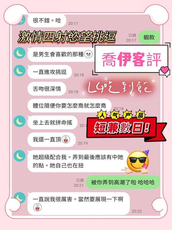 奶砲,按摩,69,共浴,LG(舌吻)依氣氛衛生而定,可親嘴,無套吹,口爆,品鮑,舔蛋,輕功,絲襪,無套做,無套內射,快餐,2S