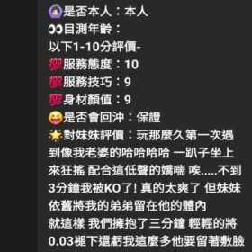 奶砲,按摩,69,共浴,殘廢澡,泰國浴,LG(舌吻)依氣氛衛生而定,可親嘴,無套吹,口爆,吞精,品鮑,舔蛋,奶推,屁推,顏射,絲襪(自備免付),玩具(按摩棒),玩具(跳蛋),情趣用品(客自備),無套做,無套內射,快餐,2S,NS