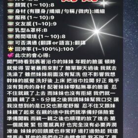 奶砲,按摩,69,共浴,殘廢澡,LG(舌吻)依氣氛衛生而定,可親嘴,無套吹,品鮑,舔蛋,輕功,無套做,無套內射,快餐,2S