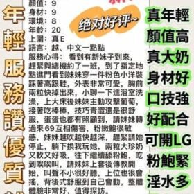 奶砲,按摩,69,共浴,LG(舌吻)依氣氛衛生而定,可親嘴,無套吹,口爆,品鮑,舔蛋,奶推,顏射,變裝,絲襪(自備免付),自慰秀,白人,快餐,2S