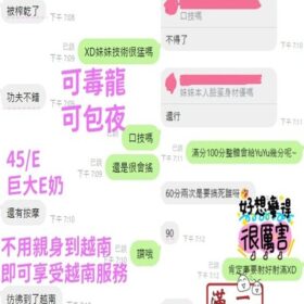 奶砲,毒龍,按摩,69,共浴,殘廢澡,LG(舌吻)依氣氛衛生而定,可親嘴,無套吹,口爆,品鮑,舔蛋,深喉嚨,變裝(自備免付),絲襪(自備免付),自慰秀,英文溝通,快餐,2S,包夜