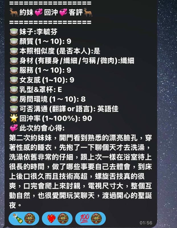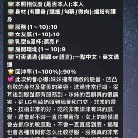 按摩,69,陪洗,共浴,LG(舌吻)依氣氛衛生而定,可親嘴,無套吹,口爆,品鮑,舔蛋,快餐,2S