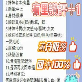 奶砲,按摩,69,共浴,可親嘴,無套吹,口爆,品鮑,舔蛋,奶推,屁推,冰火,顏射,深喉嚨,艷舞秀,變裝(自備免付),絲襪(自備免付),玩具(按摩棒),玩具(跳蛋),情趣用品(客自備),無套做,無套內射,後門,自慰秀,快餐,2S