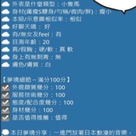 奶砲,按摩,69,陪洗,共浴,殘廢澡,泡泡浴,LG(舌吻)依氣氛衛生而定,可親嘴,無套吹,口爆,品鮑,舔蛋,漫遊,奶推,屁推,冰火,顏射,變裝(自備免付),絲襪(自備免付),玩具(按摩棒),玩具(跳蛋),情趣用品(客自備),無套做,無套內射,自慰秀,NS,包夜