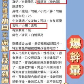 2S+500、自慰秀+500、艷舞秀+500、攝影+1000(不露臉)