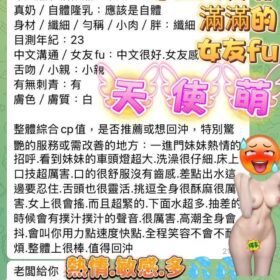 奶砲,69,殘廢澡,LG(舌吻)依氣氛衛生而定,可親嘴,無套吹,口爆,舔蛋,漫遊,奶推,冰火,深喉嚨,絲襪(自備免付),自慰秀,中文溝通,快餐,2S