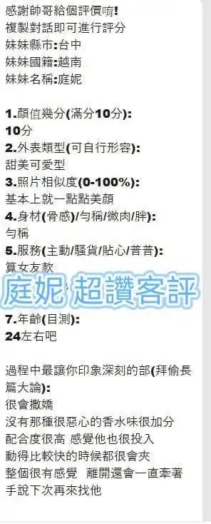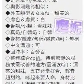 奶砲,按摩,69,共浴,LG(舌吻)依氣氛衛生而定,可親嘴,無套吹,品鮑,舔蛋,顏射,變裝(自備免付),自慰秀,快餐,2S