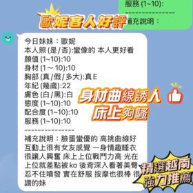 奶砲,按摩,69,共浴,LG(舌吻)依氣氛衛生而定,可親嘴,無套吹,品鮑,舔蛋,奶推,屁推,冰火,浴中蕭,深喉嚨,變裝,絲襪(自備免付),快餐,2S,包夜