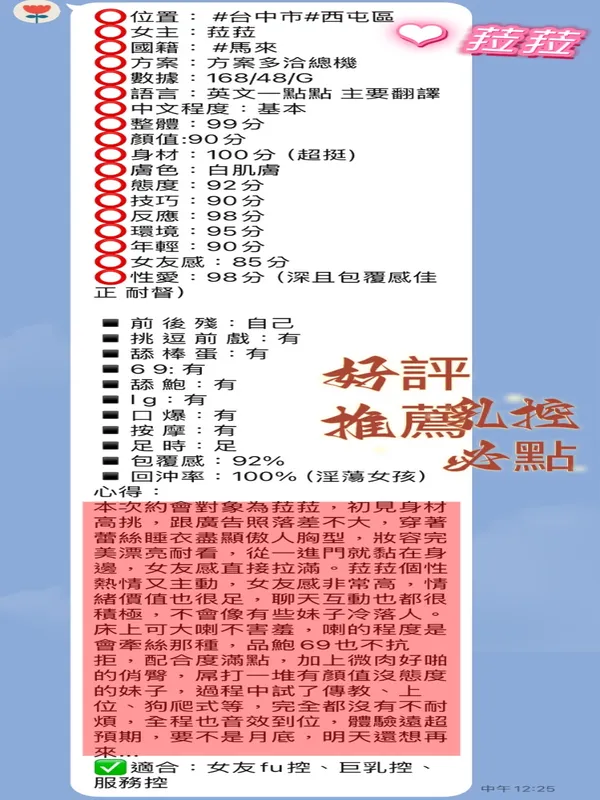 馬來妹 台中西屯區定點-168/48/23/G