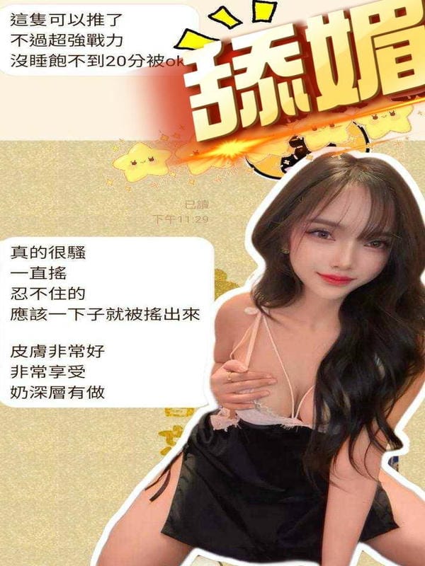 可配合 : 奶砲,按摩,共浴,泰國浴,LG(舌吻)依氣氛衛生而定,可親嘴,無套吹,口爆,品鮑,舔蛋,顏射,海底撈月,變裝,變裝(自備免付),絲襪,玩具(按摩棒),玩具(跳蛋),攝影,快餐,2S