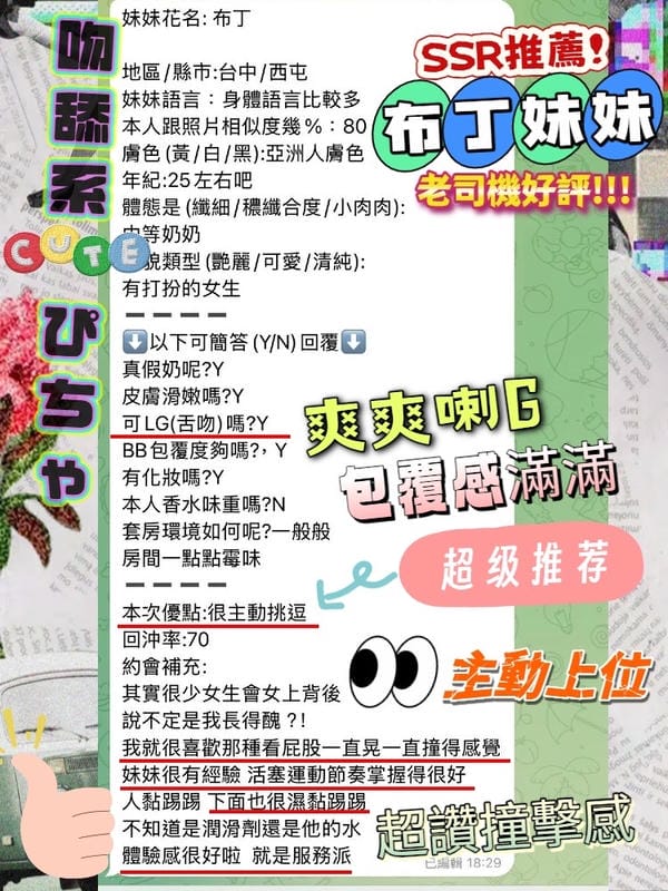 奶砲,按摩,69,共浴,LG(舌吻)依氣氛衛生而定,可親嘴,無套吹,品鮑,奶推,屁推,浴中蕭,絲襪,無套做,無套內射,快餐,2S,NS
