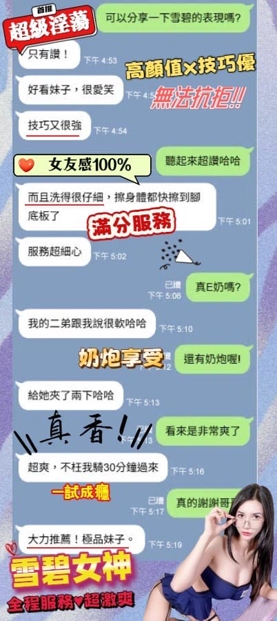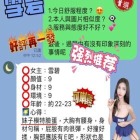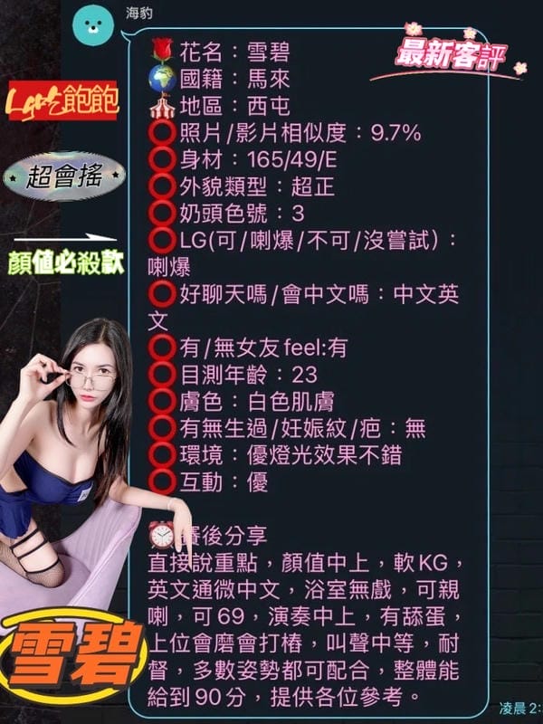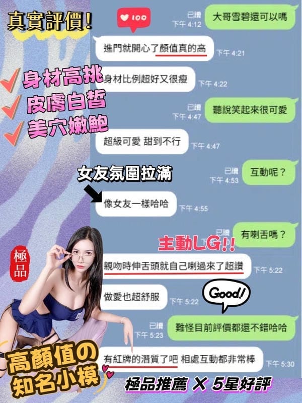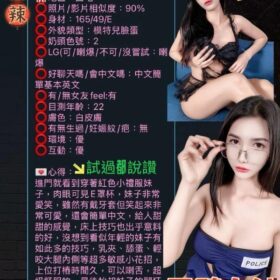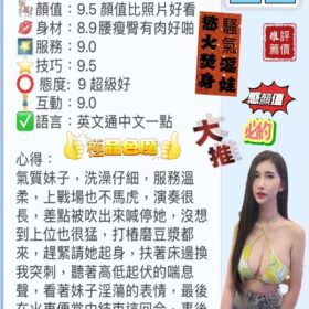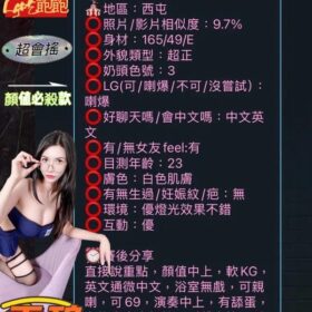 奶砲,按摩,69,共浴,LG(舌吻)依氣氛衛生而定,可親嘴,無套吹,口爆,潮吹(依貴賓技術而定),品鮑,舔蛋,奶推,屁推,顏射,浴中蕭,絲襪,無套做,無套內射,後門,自慰秀,中文溝通,快餐,2S