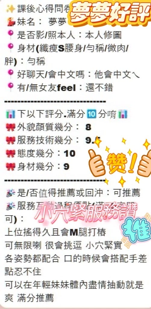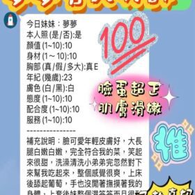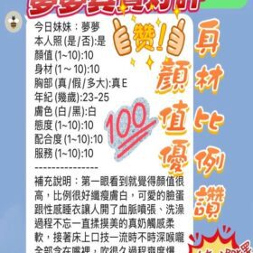 奶砲,按摩,69,共浴,泰國浴,可親嘴,無套吹,口爆,品鮑,舔蛋,奶推,屁推,浴中蕭,深喉嚨,變裝(自備免付),絲襪(自備免付),無套做,快餐,2S