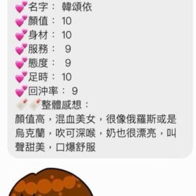 奶砲,69,共浴,LG(舌吻)依氣氛衛生而定,可親嘴,無套吹,口爆,品鮑,舔蛋,顏射,艷舞秀,絲襪(自備免付),玩具(按摩棒),玩具(跳蛋),情趣用品(客自備),無套做,無套內射,自慰秀,快餐,2S