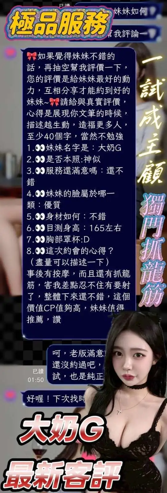2S+500、艷舞秀+500、自慰秀+500、口爆+500、顏射+500、攝影+1000