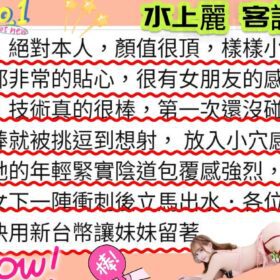 69,殘廢澡,可親嘴,無套吹,口爆,品鮑,屁推,水床浴,變裝,玩具(按摩棒),玩具(跳蛋),無套做,無套內射,自慰秀,攝影,2S