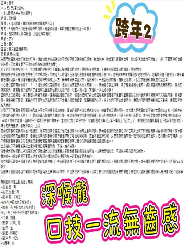 2S+500(60分)、無套外射+1000、無套內射+1500、後門+1000、自慰秀+500、口爆+500、顏射+500、吞精+500