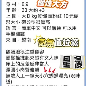 奶砲,按摩,69,共浴,LG(舌吻)依氣氛衛生而定,可親嘴,無套吹,口爆,品鮑,舔蛋,艷舞秀,絲襪,玩具(按摩棒),玩具(跳蛋),情趣用品(客自備),自慰秀,攝影,白人,中文溝通,快餐,2S,包夜,射後清槍