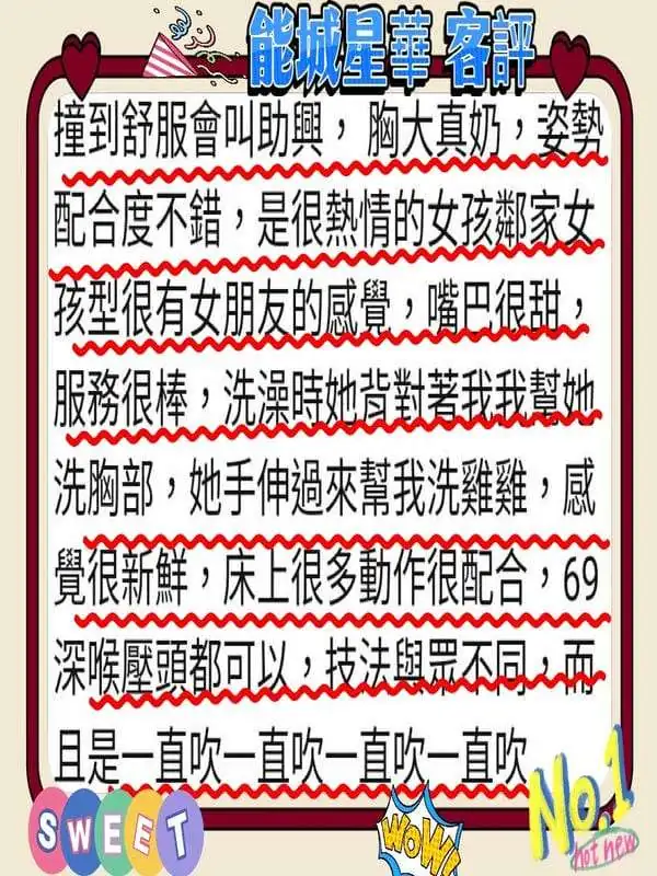 奶砲,毒龍,按摩,69,共浴,LG(舌吻)依氣氛衛生而定,可親嘴,無套吹,口爆,品鮑,顏射,水床浴,深喉嚨,變裝,玩具(按摩棒),玩具(跳蛋),情趣用品(客自備),無套做,無套內射,攝影,2S