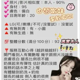 奶砲,按摩,共浴,LG(舌吻)依氣氛衛生而定,可親嘴,無套吹,口爆,舔蛋,顏射,自慰秀,快餐,2S,射後清槍