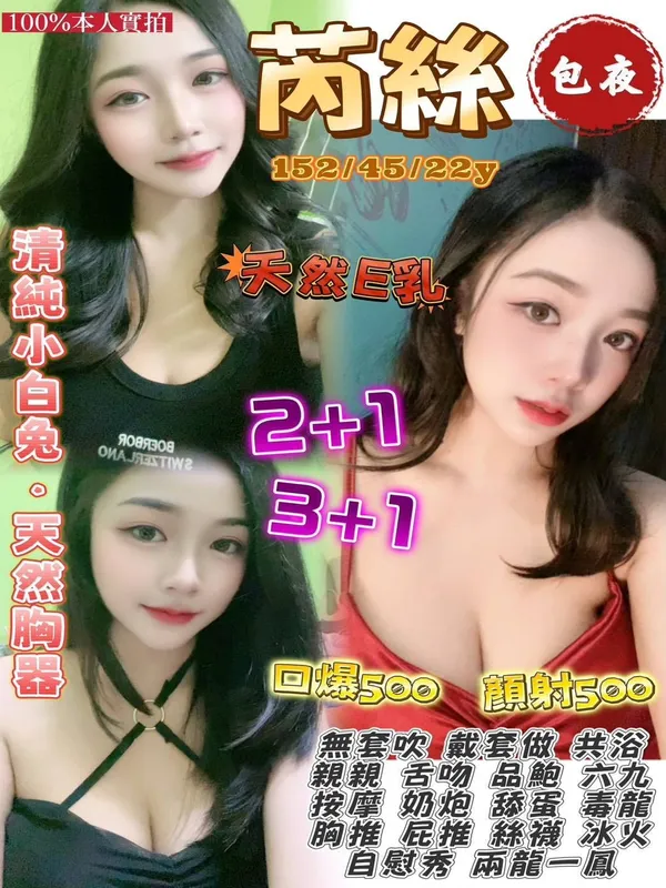 奶砲,毒龍,按摩,69,共浴,LG(舌吻)依氣氛衛生而定,可親嘴,無套吹,口爆,品鮑,舔蛋,奶推,屁推,冰火,顏射,絲襪,自慰秀,快餐,2S