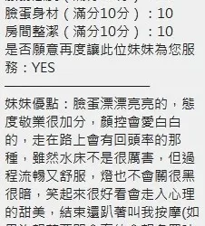 奶砲,按摩,69,共浴,LG(舌吻)依氣氛衛生而定,可親嘴,無套吹,口爆,品鮑,舔蛋,奶推,屁推,水床浴,變裝(自備免付),絲襪(自備免付),快餐,2S,包夜