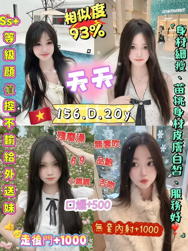 2S+500(60分)、無套內射+1000、口爆+500、後門+1000