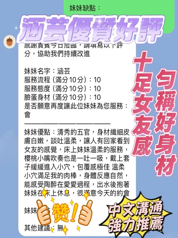 奶砲,按摩,69,共浴,LG(舌吻)依氣氛衛生而定,可親嘴,無套吹,口爆,品鮑,舔蛋,屁推,浴中蕭,深喉嚨,艷舞秀,絲襪(自備免付),自慰秀,快餐,2S