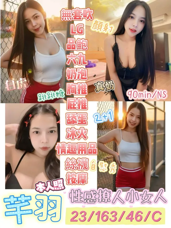 奶砲,按摩,69,陪洗,LG(舌吻)依氣氛衛生而定,可親嘴,無套吹,品鮑,舔蛋,奶推,屁推,冰火,顏射,跳跳糖吹簫,絲襪,玩具(按摩棒),玩具(跳蛋),自慰秀,英文溝通,快餐,2S,NS