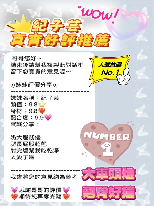 奶砲,按摩,69,殘廢澡,LG(舌吻)依氣氛衛生而定,可親嘴,無套吹,品鮑,舔蛋,奶推,屁推,深喉嚨,絲襪(自備免付),後門,快餐,2S,NS